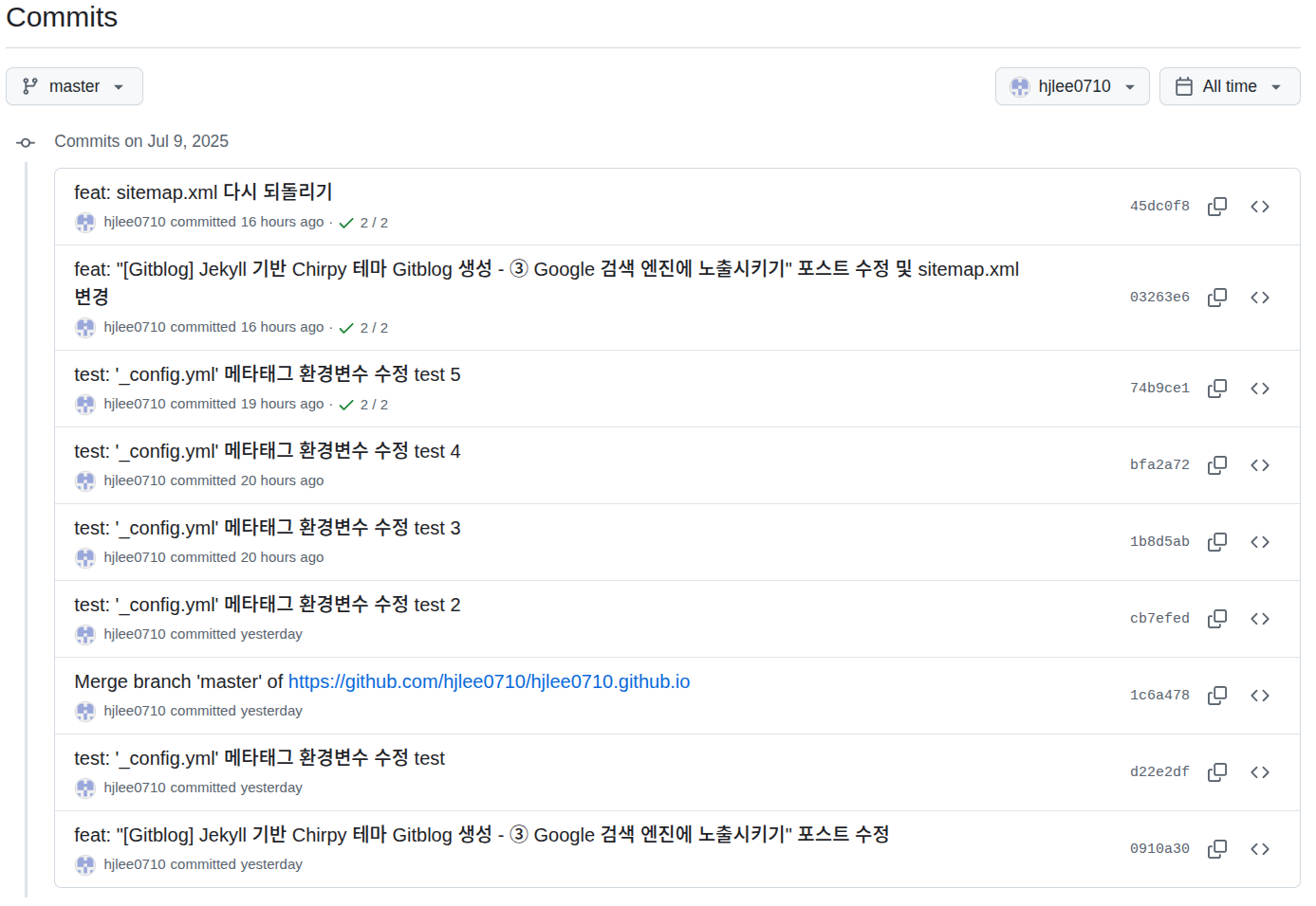 GitHub는 소스코드 수정 내역이 아래의 사진과 같이 모두 Commit log에 저장 됩니다.
