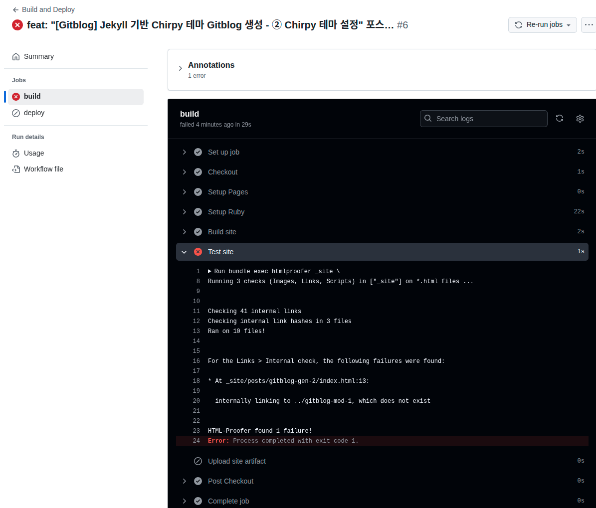 Fail이 떴네요. 하지만 너무 걱정하지 마세요. 이유를 자세하게 설명해주거든요. 아래의 그림에서는 잘못된 링크를 걸어서 문제가 발생했네요.