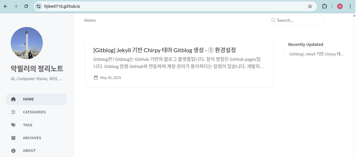 [Gitblog] Jekyll 기반 Chirpy 테마 Gitblog 생성 - ② Chirpy 테마 적용 및 배포